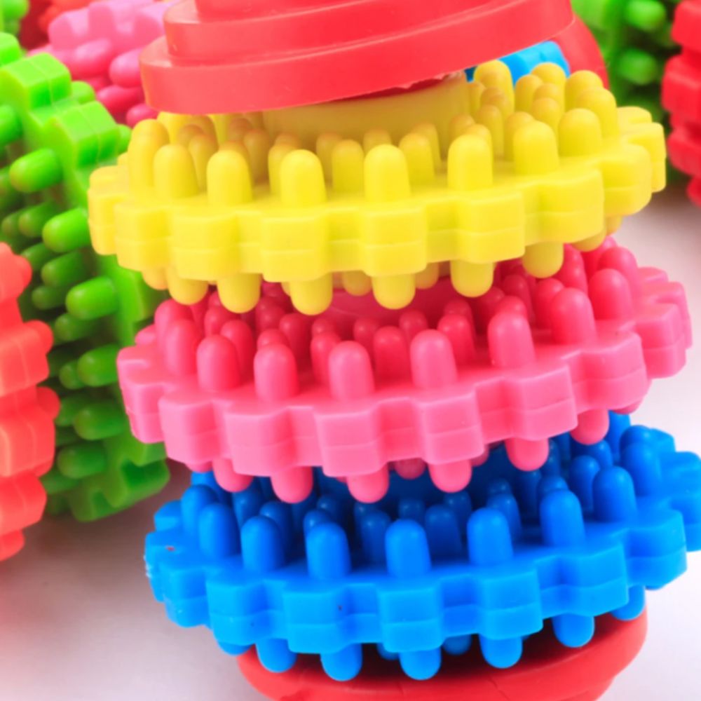 Παινχνίδι Πολύχρωμο γρανάζι, που θα τραβήξει την προσοχή του μικρού μας φίλου και θα τον κρατήσει απασχολημένο για αρκετή ώρα. Είναι φτιαγμένο απο TRP (Thermo Plastic Rubber), υλικό πολύ ανθεκτικό και εύκαμπτο, γεγονός που καθιστά ακίνδυνο για τα δοντάκια και τα ούλα των σκύλων.